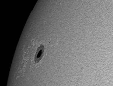 Flere forsøk de siste dagene viste seg at en rull med solfiltermateriale som jeg har hatt siden solformørkelsen i 1999, var uegnet til høy-oppløselig fotografi. Thousand Oaks Optical sin Type 2+ filter derimot var meget godt egnet. Problemet var det at jeg hadde kun et 90 mm-diameter Thousand Oaks Type 2+ filter, tilpasset en Meade ETX 90. Da måtte jeg dessverre redusere aperturen på refraktoren fra 120 mm til 90 millimeter. Det ble likevel en oppløsningsgevinst, da reduksjon i diameter...